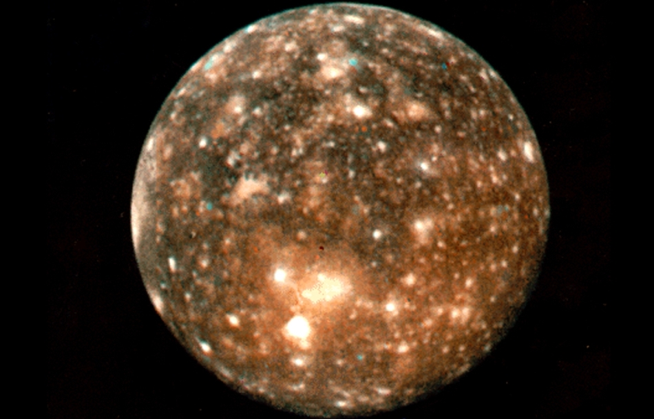 Самый удаленный из Галилеевых спутников, Каллисто, находится в среднем на расстоянии около 1 883 000 километров от центра Юпитера. Он совершает одну орбиту и один оборот за 16,7 земных суток. Диаметр на экваторе Каллисто составляет около 4800 километров. Спутник Каллисто всего лишь в 1,8 раза плотнее воды.